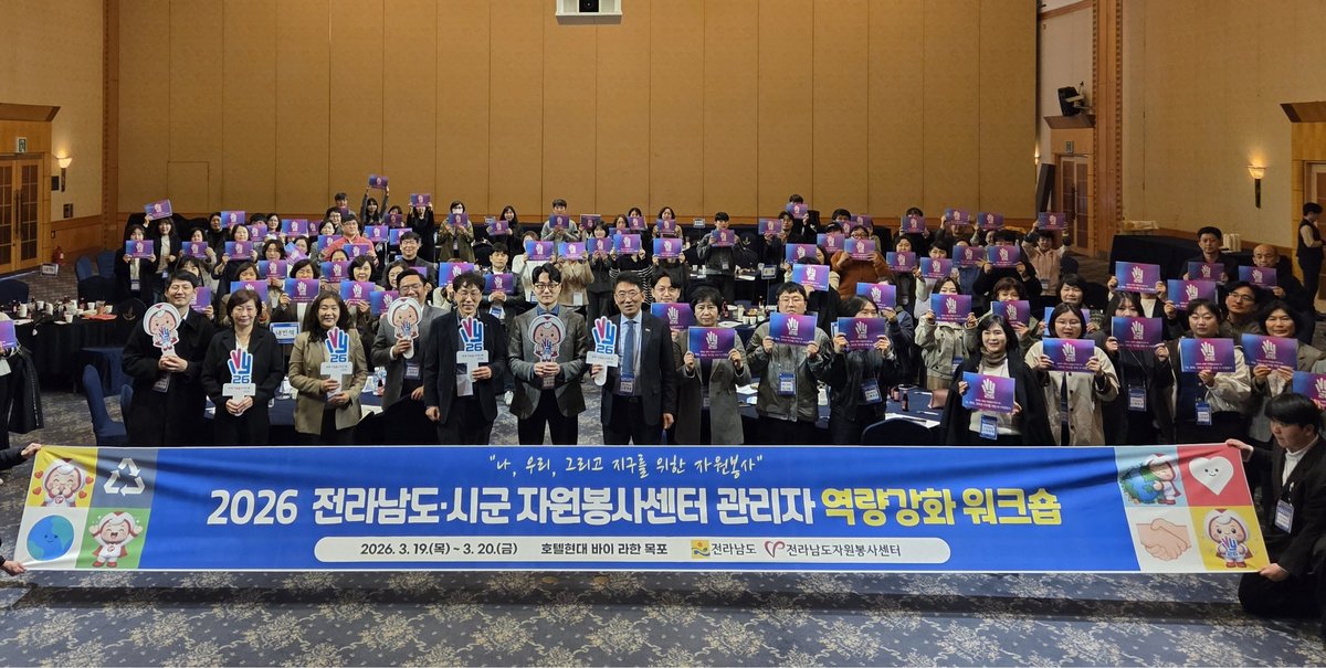 [충청뉴스큐] 전라남도는 자원봉사센터 관리자의 전문성 향상과 도 시군 간 협력 강화를 위해 2026년 ‘도 시군 자원봉사센터 관리자 역량강화 워크숍’을 20일까지 이틀간 영암 호텔현대 바이 라한에서 개최했다고 밝혔다.