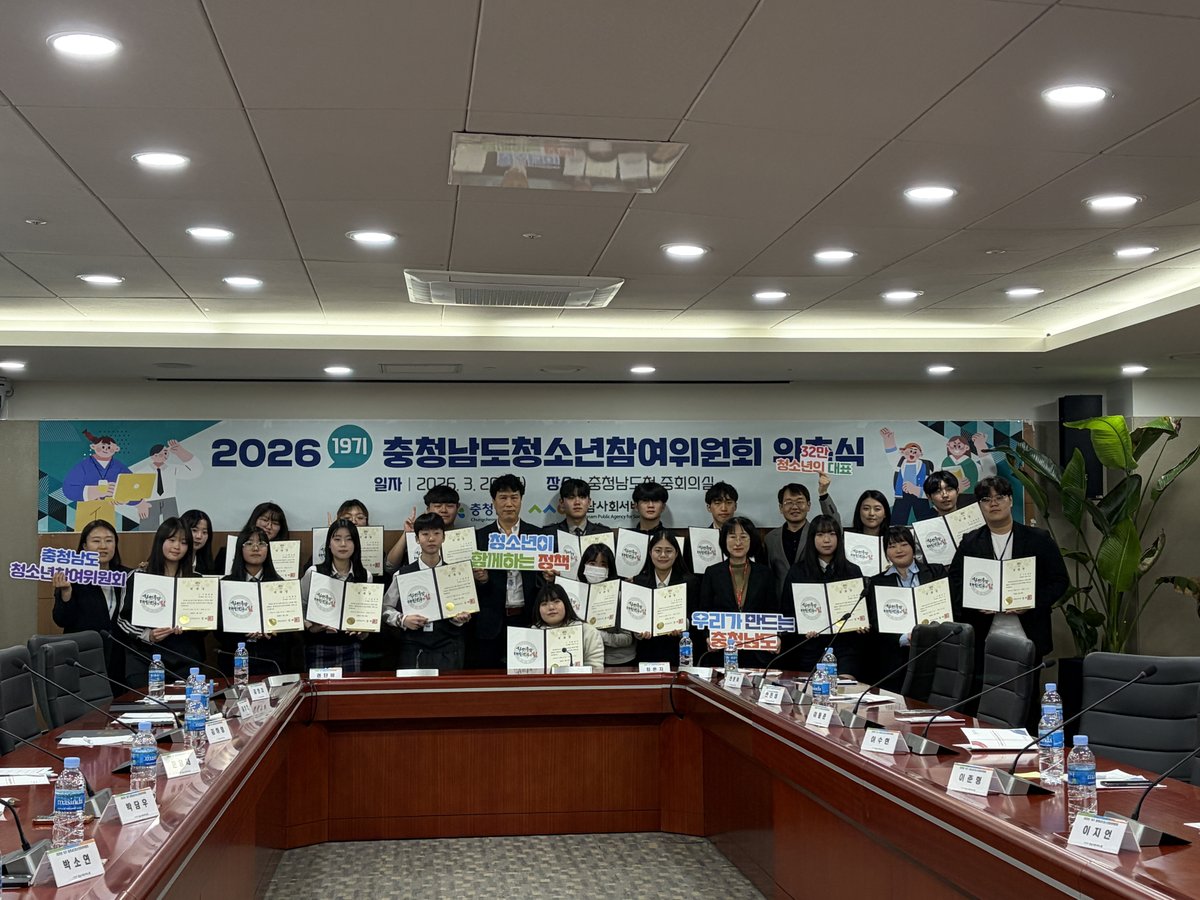 [충청뉴스큐] 충남도는 20일 도청 중회의실에서 ‘2026년 충청남도청소년참여위원회 위촉식’을 개최했다.