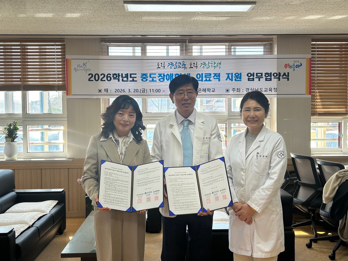 [충청뉴스큐] 경상남도교육청은 20일 오전 11시, 김해은혜학교에서 서종요양병원과 중도장애학생을 위한 맞춤형 의료 지원 업무 협약을 체결했다.
