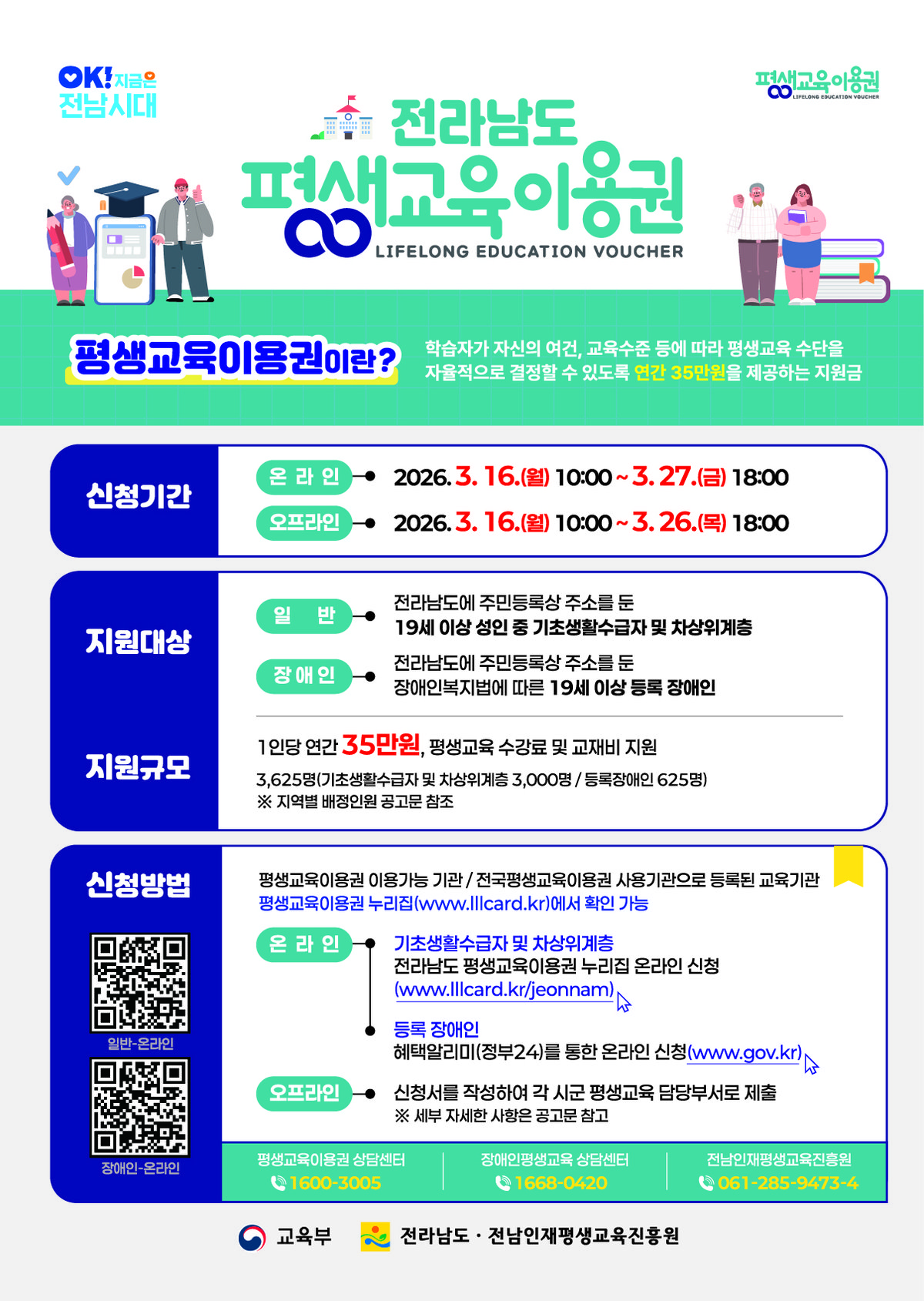 [충청뉴스큐] 전라남도와 전남인재평생교육진흥원은 오는 27일까지 저소득층과 장애인을 대상으로 ‘2026 전라남도 평생교육이용권’1차 신청을 받는다고 밝혔다.