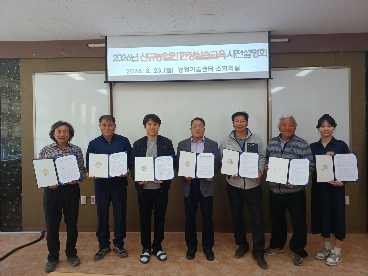 [충청뉴스큐] 증평군농업기술센터는 지난 23일 귀농 연수생 및 선도 농가와 2026년 신규농업인 현장실습 교육 약정서를 체결하고 사전교육을 진행했다고 밝혔다.