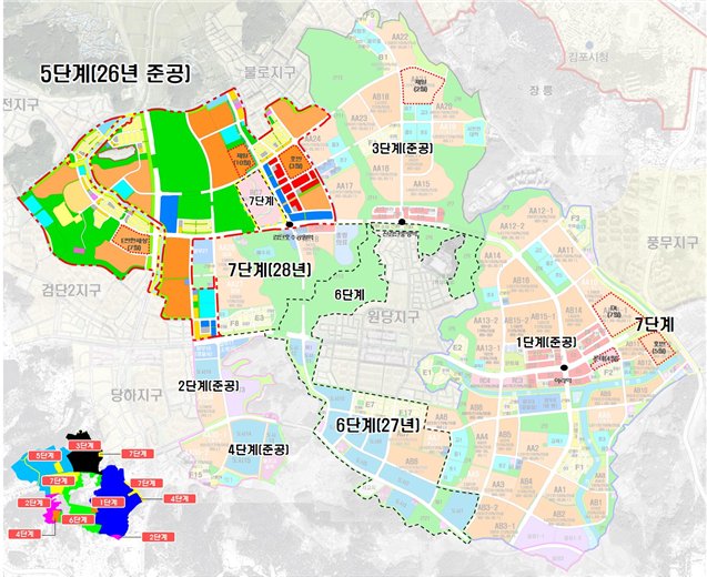 5단계 사업구역은 약 240만 규모로 공동주택용지 16개 블록을 포함한 주택건설용지와 함께 공원 녹지, 도로 상 하수도 등 도시기반시설이 조성될 예정이다.