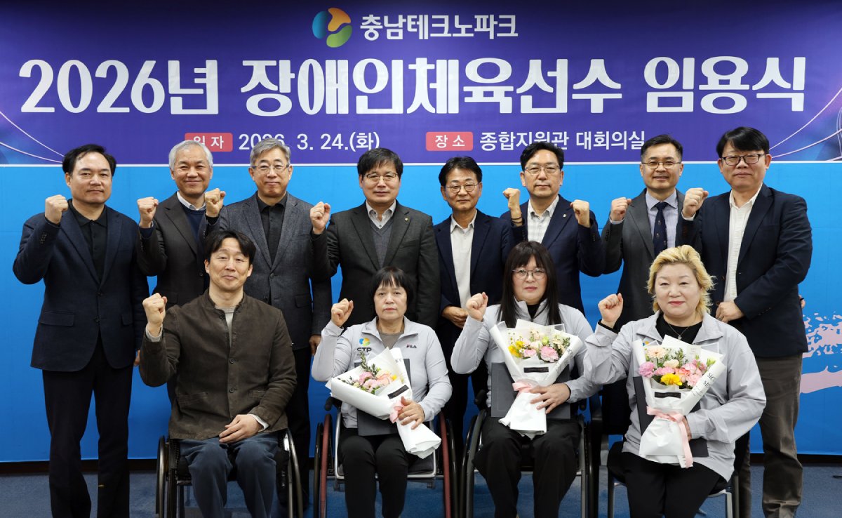 [충청뉴스큐] 충남테크노파크는 24일 충남TP 천안 본원에서 '장애인 체육선수 임용식'을 개최하고 ESG 경영의 일환인 사회형평적 채용을 실천했다고 밝혔다.