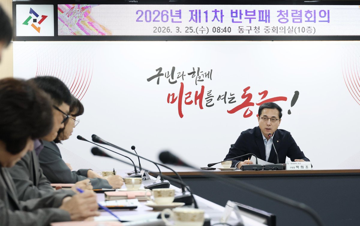 [충청뉴스큐] 대전 동구는 25일 구청 중회의실에서 기관장 주재로 '2026년 제1차 동구 반부패 청렴 회의'를 개최했다고 밝혔다.