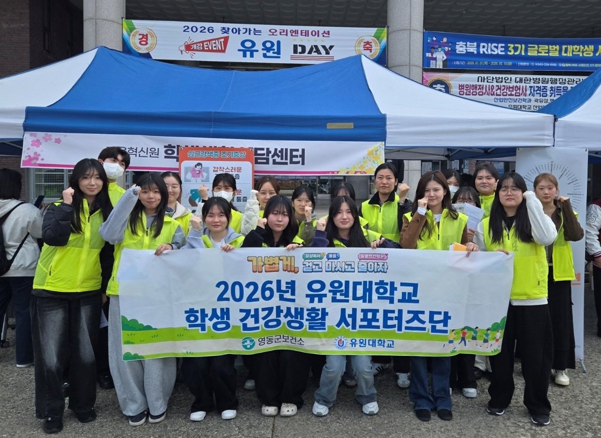 [충청뉴스큐] 충북 영동군보건소는 대학생들의 창의적인 아이디어를 활용해 교내외 건강 친화적 환경을 조성하고자 유원대학교와 함께 ‘2026년 학생 건강생활 서포터즈’ 운영에 나선다.