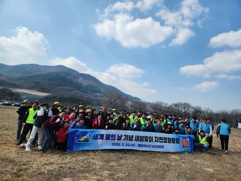 [충청뉴스큐] 예산군은 지난 25일 예당저수지 일원에서 관내 사회 환경단체와 한국농어촌공사 예산지사, 예당내수면어업계, 공무원 등 110여명이 참여한 가운데 ‘세계 물의 날’을 기념한 자연정화활동을 펼쳤다.