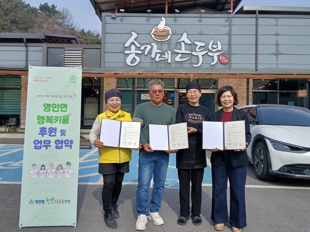 협약에 따라 송가네손두부는 영인면 행복키움추진단이 발굴한 저소득 소외계층 어르신들에게 식사를 제공하며 지역사회 나눔 실천에 동참하기로 했다.