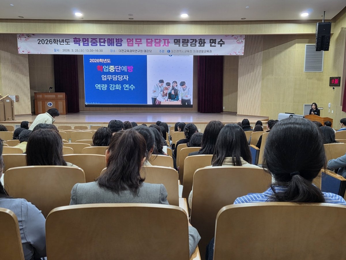 [충청뉴스큐] 대전시교육청은 3월 25일 대전교육과학연구원 대강당에서 관내 초 중 고 특수 각종학교의 학업중단예방 업무담당자를 대상으로 ‘2026학년도 학업중단예방 업무담당자 역량강화 연수’를 개최했다고 밝혔다.