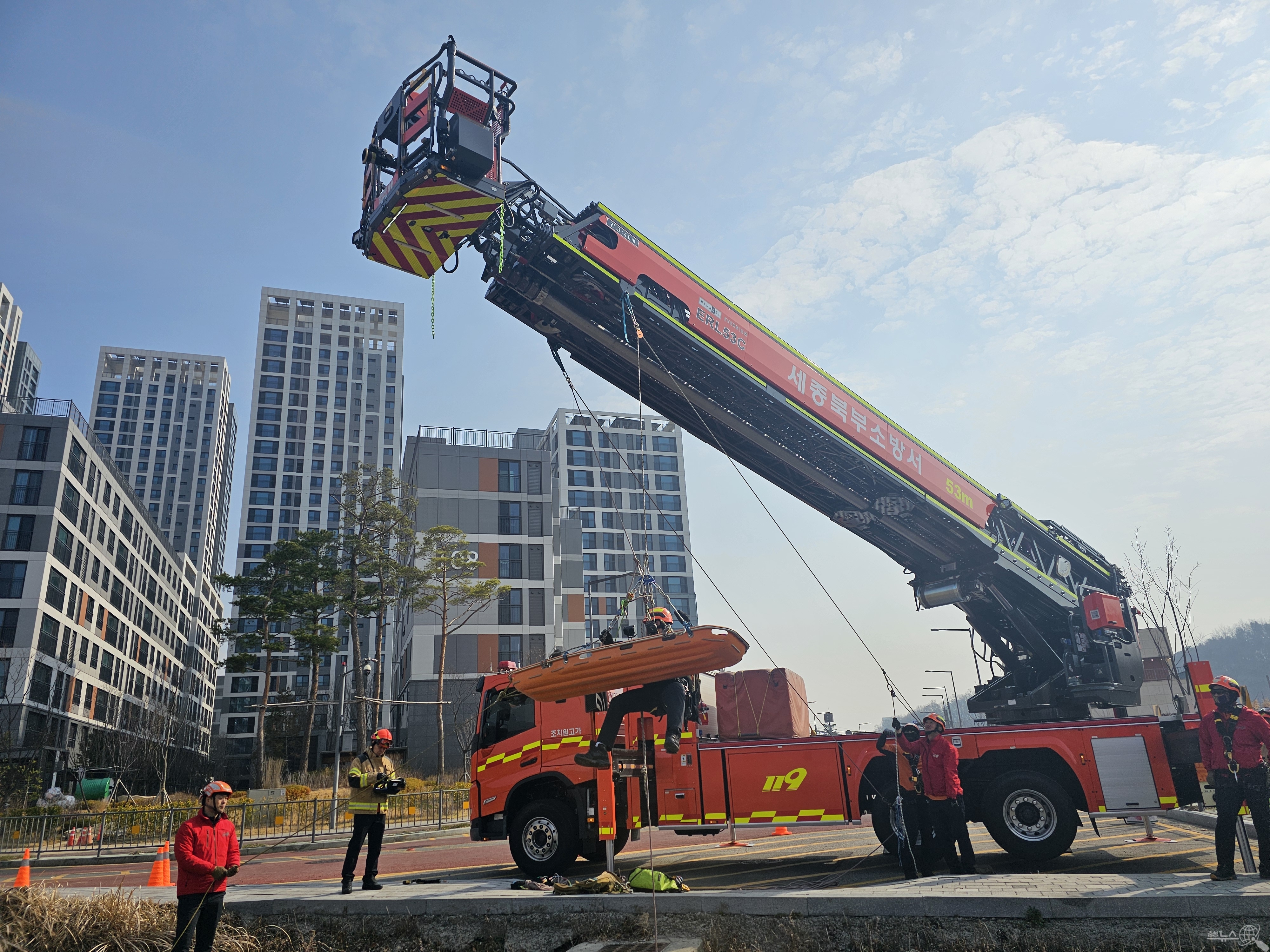 주요 훈련 내용은 ▲소방 드론 활용 상공 수색 및 인명 구조 ▲고가사다리차 현장 적응 훈련 ▲인명 검색 기법 및 로프 구조 훈련 등이다.