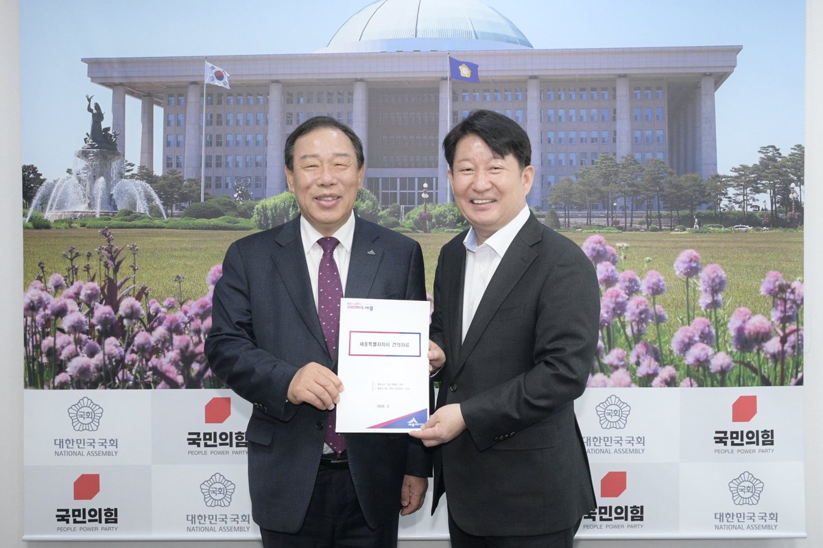 이날 최민호 시장은 행정수도건설특별법을 공동 발의한 국토교통위원회 소속 엄태영 의원을 만나 오는 30일 열릴 예정인 국토법안심사소위에서 행정수도건설특별법 제정안이 논의되도록 발의자로서 관심을 가져줄 것을 요청했다.