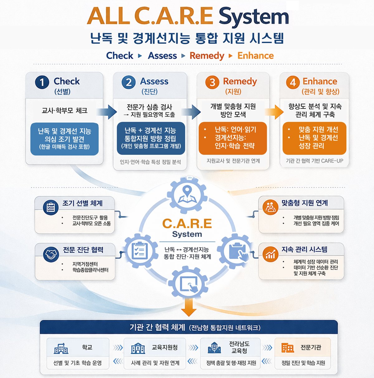 [충청뉴스큐] 전라남도교육청은 경계선 지능 학생과 난독 학생의 맞춤 지원을 위한 '전남형 기초학력 보장 체계'를 한층 강화한다.