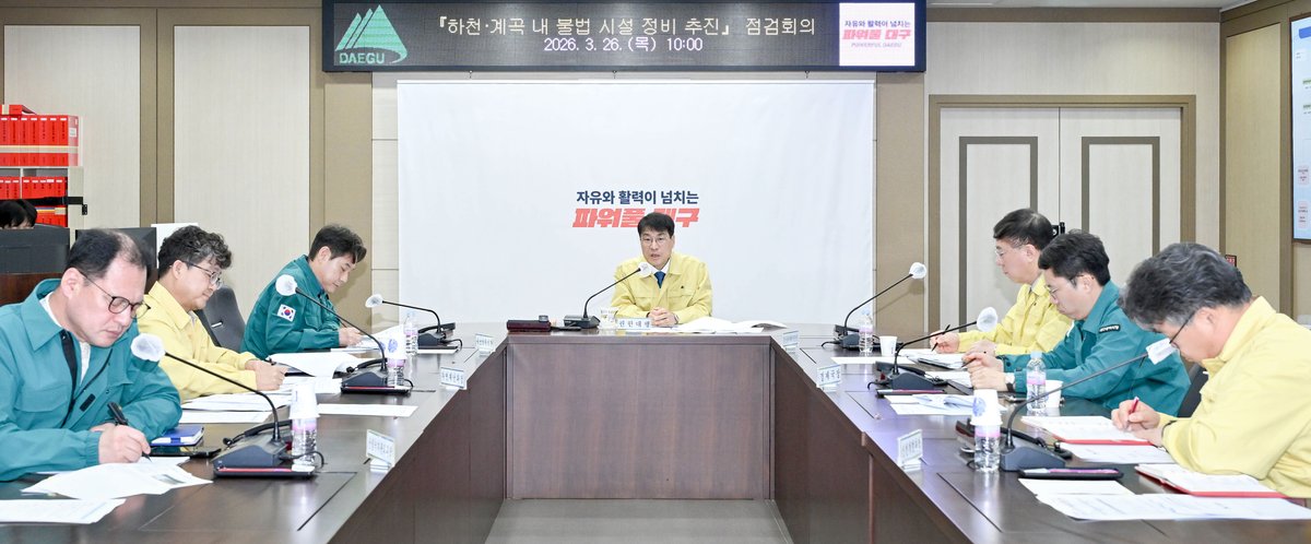 [충청뉴스큐] 대구광역시는 다가오는 여름철 집중호우 및 태풍에 대비해 3월 26일 권한대행 주재로 '하천 계곡 내 불법 점용시설 정비 추진 점검회의'를 개최하고 전면적인 대응 체계 점검에 나섰다.