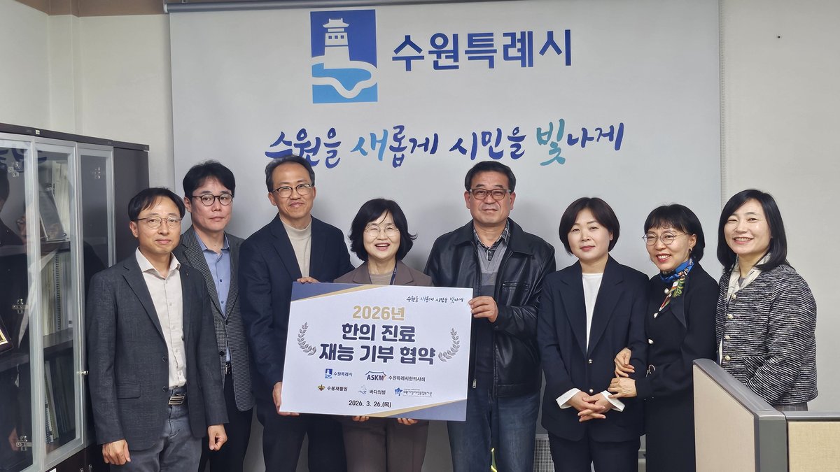 수원특례시와 수원시 한의사회, 장애인복지시설 3개소는 26일 수원시청에서 협약을 체결하고 장애인 건강 증진을 위한 협력하기로 했다.