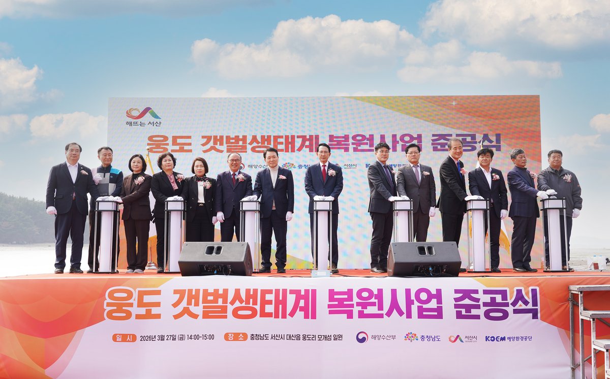시는 27일 대산읍 웅도리 모개섬 일원에서 ‘웅도 갯벌 생태계 복원사업 준공식’을 개최했다고 밝혔다.