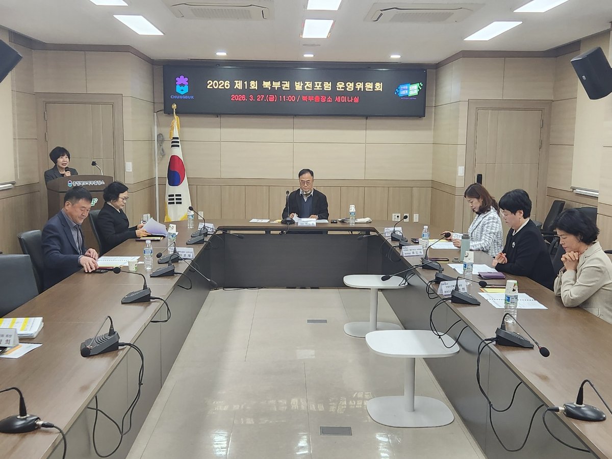 2026년 제1회 북부권 발전포럼 운영위원회 개최 회의개요 일 시 : 2026년 3월 27일 11:00 ~ 장 소 : 북부출장소 세미나실 참 석 : 운영위원 11명 - 포 럼 위 원 :이근영 위원장, 부위원장, 분과위원장 및 간사 8명 - 북부출장소 : 당연직이상옥 북부출장소장 내 용 : 2026년도 북부권 발전포럼 운영일 정 협의 등 진행순서 소요시간 주 요 내 용 비고 11:00~11:05 5개회 및 참석자 소개 사 회 자 11:05~11:10 5 2025년 북부권 발전포럼 운영결과 보고 출장소장 11:10~11:13 3'위원장 인사말씀 위 원 장 11:13~11:48 35 발전포럼 운영계획 및 주요안건 2026년도 북부권 발전포럼 운영계획 주요안건 논의 - 상반기 정기총회 개최 시기 선정 - 기타 건의사항 및 애로사항 의견수렴 - 포럼 운영 관련 안내사항 "11:48~11:50 2 마무리 말씀 "북부권 발전포럼 운영위원회 위원명단 구분 소 속 직 위 성 명 비고 1 충청북도 북부권 발전포럼 위원장 이근영 세명대학교 교수 2 "부위원장 권택조 단양군 체육회 회장 3 "도시 환경 분과위원장 최은희 제천시민햇빛발전협동조합 이사 4 "도시 환경 분과간사 이호재 신활력사업단 사무국장 5 "문화 관광 분과위원장 김태권 제천시 관광협의회장 6 "문화 관광 분과간사 박헌영 제천시체육회 사무국장 7 "복지 여성 분과위원장 류인숙 제천YWCA 사무총장 8 "복지 여성 분과간사 최은하 단양노인 복지관 관장 9 "지역 경제 분과위원장 김창희 역전한마음시장 상인회 회장 10 "지역 경제 분과간사 박경희 한국여성소비자 연합단양지부 회장 11 충청북도 북부출장소