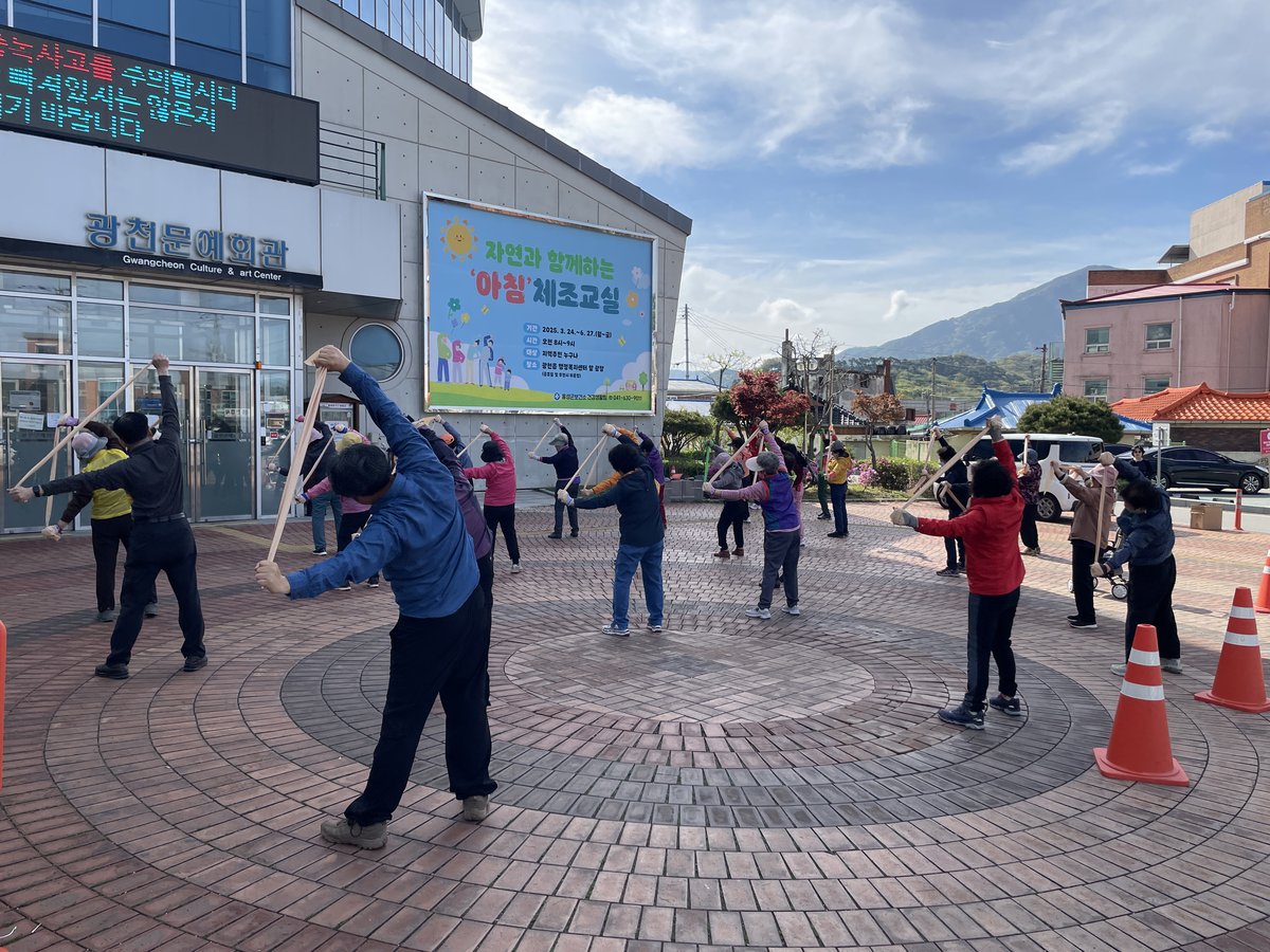 이번 상반기 아침 체조교실은 역재방죽공원과 광천읍 행정복지센터 앞 광장 두 곳에서 평일 오전 8시부터 9시까지 주 5회 진행된다.