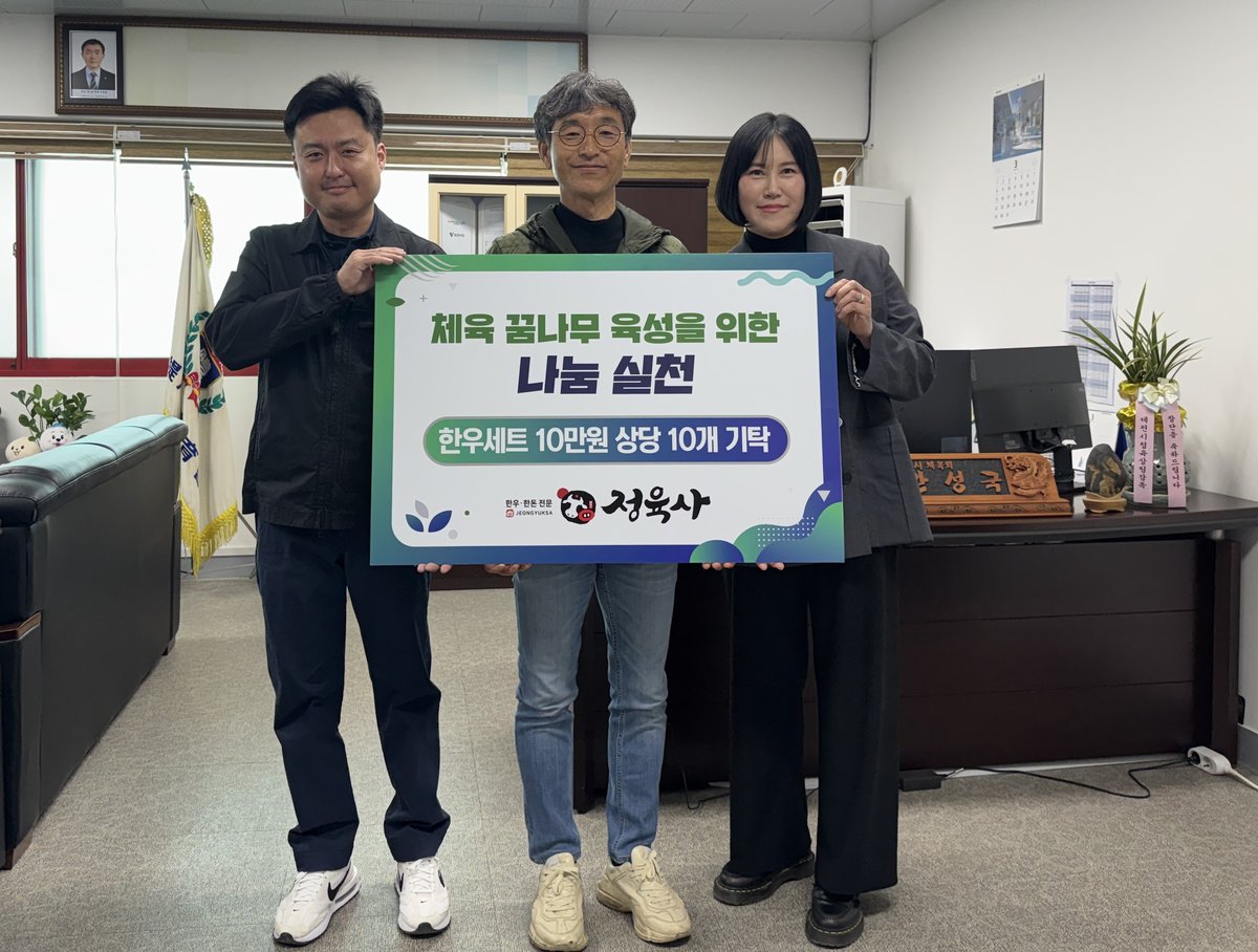 [충청뉴스큐] 제천시체육회와 정육사는 지난 25일 관내 초등학교 선수들을 위한 나눔을 실천했다.