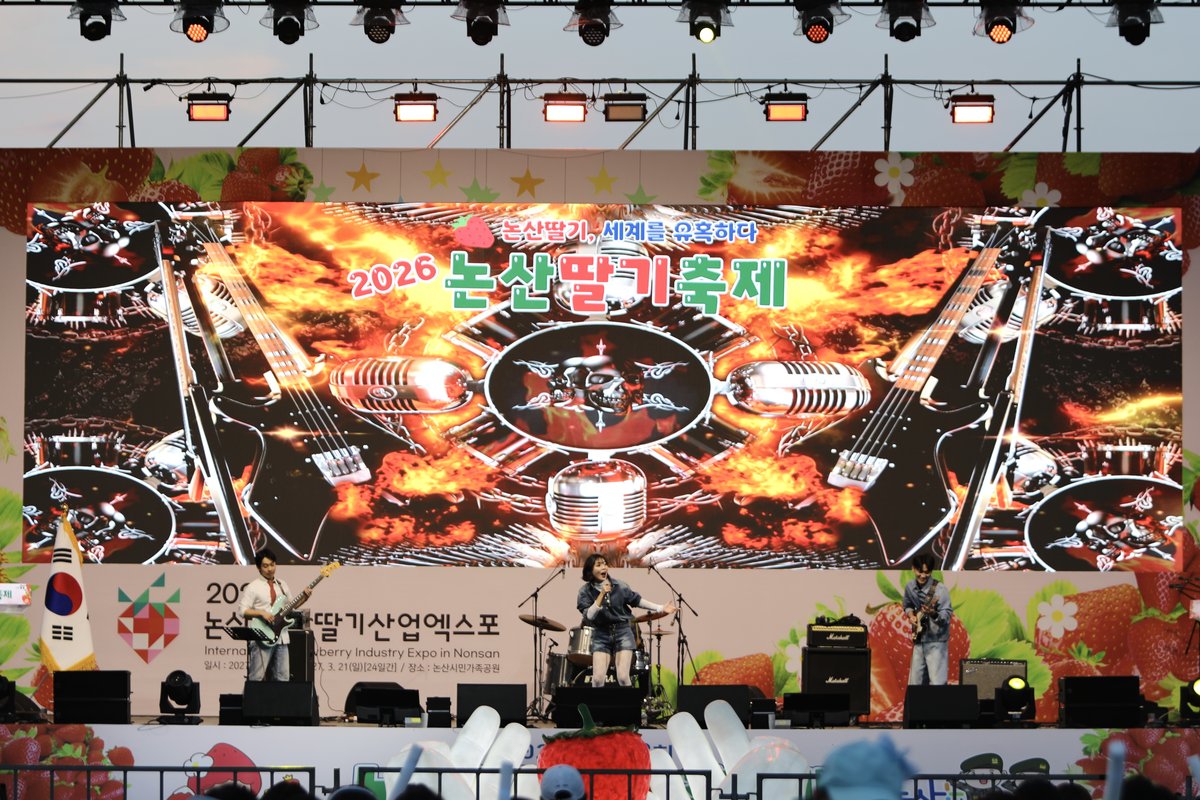 [충청뉴스큐] 충남콘텐츠진흥원이 운영하는 충남음악창작소에서 발굴한 지역 뮤지션 '차잔밴드'가 논산딸기축제 폐막식 무대에 올라 축제의 마지막을 성황리에 장식했다.