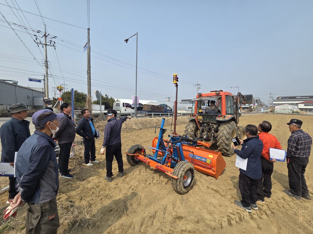 지난 27일 서탄면 수월암리에서 지원받은 레이저 균평기를 활용한 논 균평작업 시연회를 개최했다.