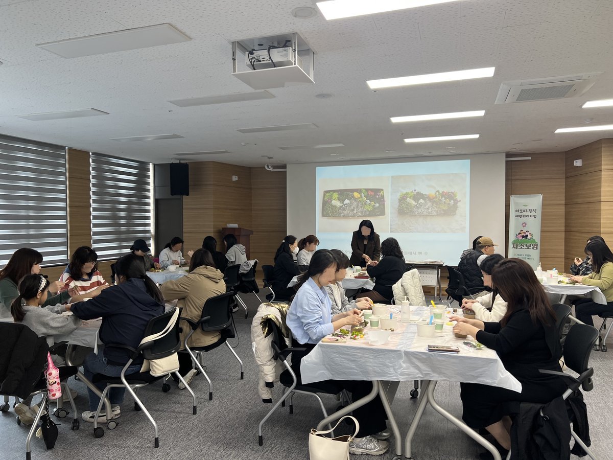 주요 내용은 봄철 황사 및 미세먼지 대응 요령 실내 공기질 관리 방법 환절기 알레르기질환 관리법 등으로 구성됐으며 이론 학습에 이어 친환경 발포세라믹을 활용한 ‘천연 가습기 미니정원’ 만들기 실습이 진행되어 큰 호응을 얻었다.