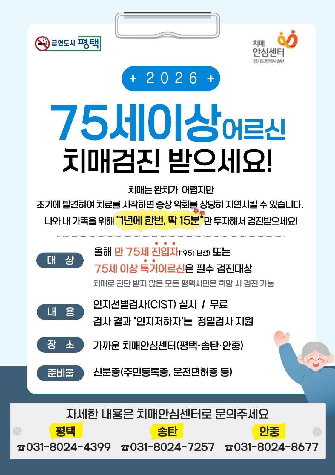 [충청뉴스큐] 평택시는 2026년 치매 고위험군을 대상으로 한 집중 검진 및 체계적인 관리 서비스를 제공하고 있다.