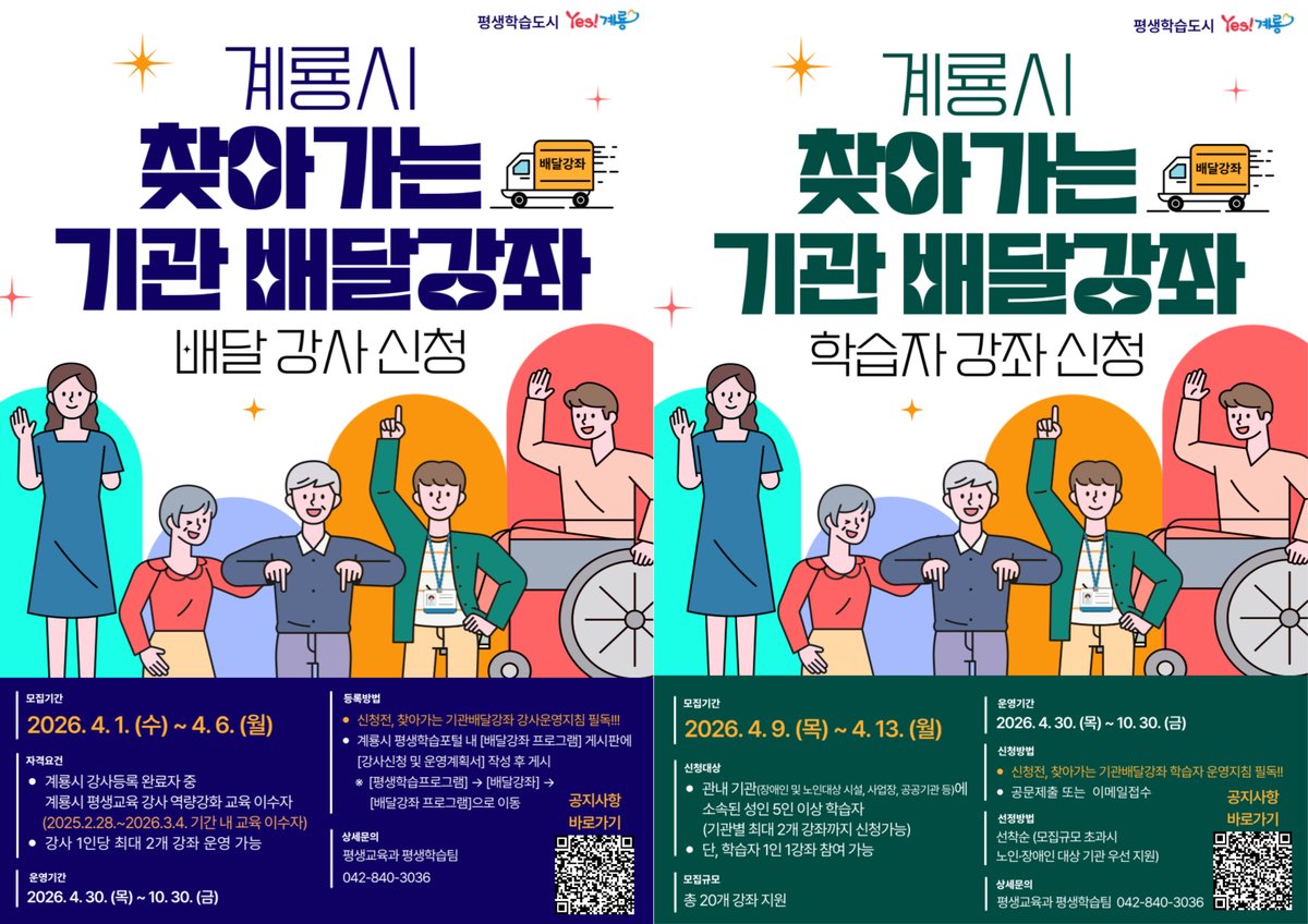 시 관계자는 “배달강좌는 시민이 원하는 시간과 장소에서 학습할 수 있도록 지원하는 수요자 중심의 평생학습 프로그램”이라며 “관심 있는 강사와 시민들의 많은 참여를 바란다”고 말했다.