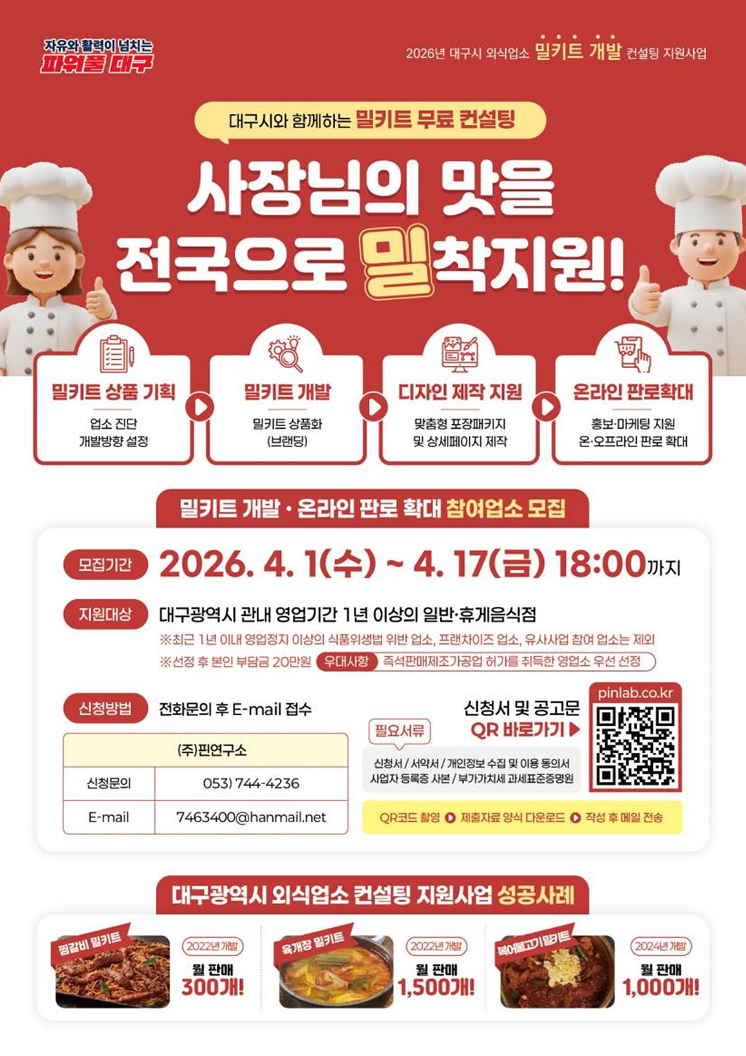 [충청뉴스큐] 대구광역시는 지역 외식업소의 경쟁력을 높이고 온라인 시장 진출을 돕기 위한 ‘2026년 외식업소 밀키트 개발 컨설팅 지원사업’ 참여업소를 오는 4월 17일까지 모집한다.