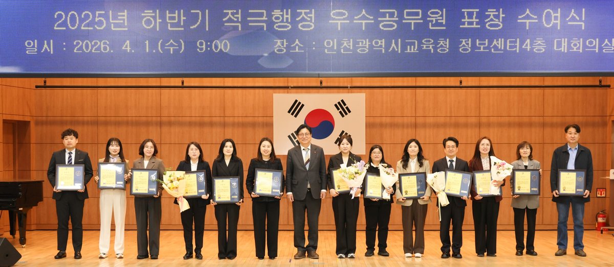 [충청뉴스큐] 인천광역시교육청은 1일 정보센터 대회의실에서 ‘2025년 하반기 적극행정 우수공무원 표창 수여식’을 개최했다.
