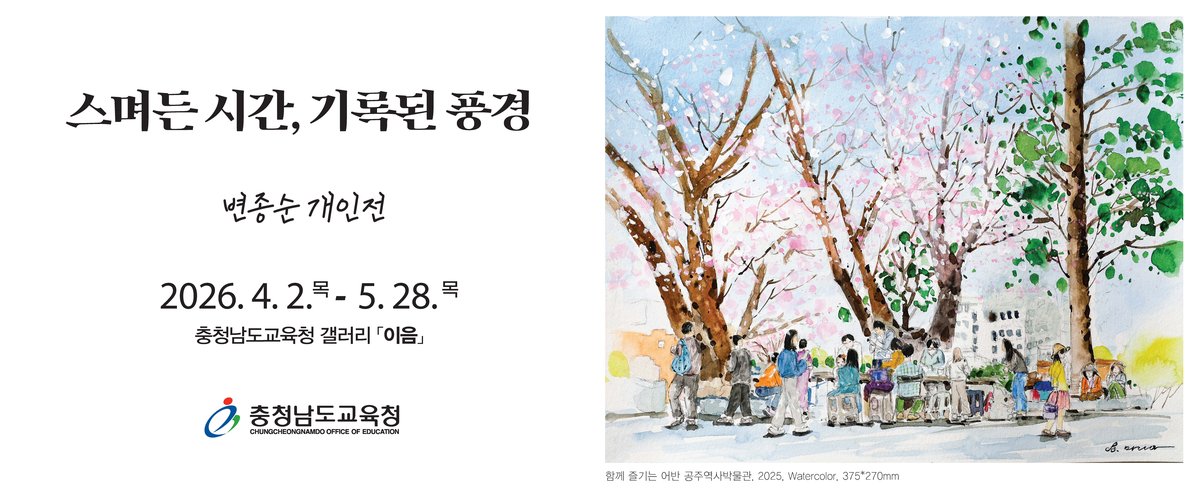 [충청뉴스큐] 충남교육청은 오는 4월 2일부터 5월 28일까지 충남교육청 별관 1층 갤러리 이음에서 변종순 작가의 첫 개인전 '스며든 시간, 기록된 풍경'을 개최한다고 밝혔다.