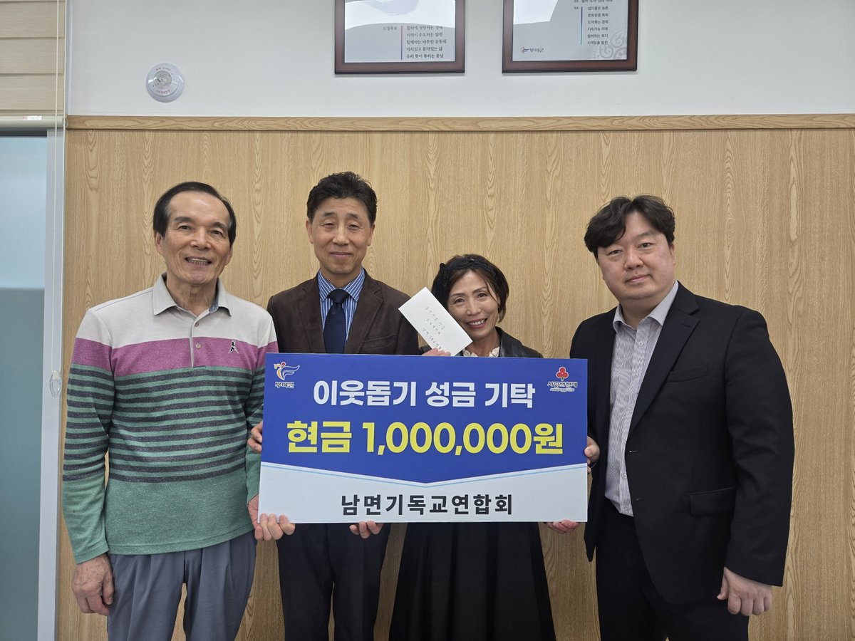 고인숙 남면장은 “지역의 어려운 이웃을 위해 뜻깊은 나눔을 실천해 주신 남면기독교연합회에 깊이 감사드린다”며 “기탁해 주신 성금은 꼭 필요한 곳에 소중히 전달하겠다”고 밝혔다.