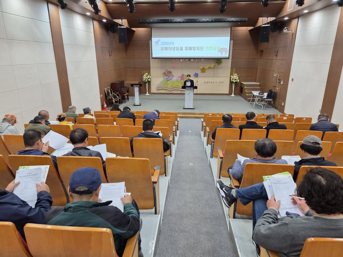 [충청뉴스큐] 단양군은 단양경찰서와 협업해 지난 1일 단양군 평생학습센터에서 ‘2026년 유해야생동물 피해방지단 안전교육’을 실시했다.