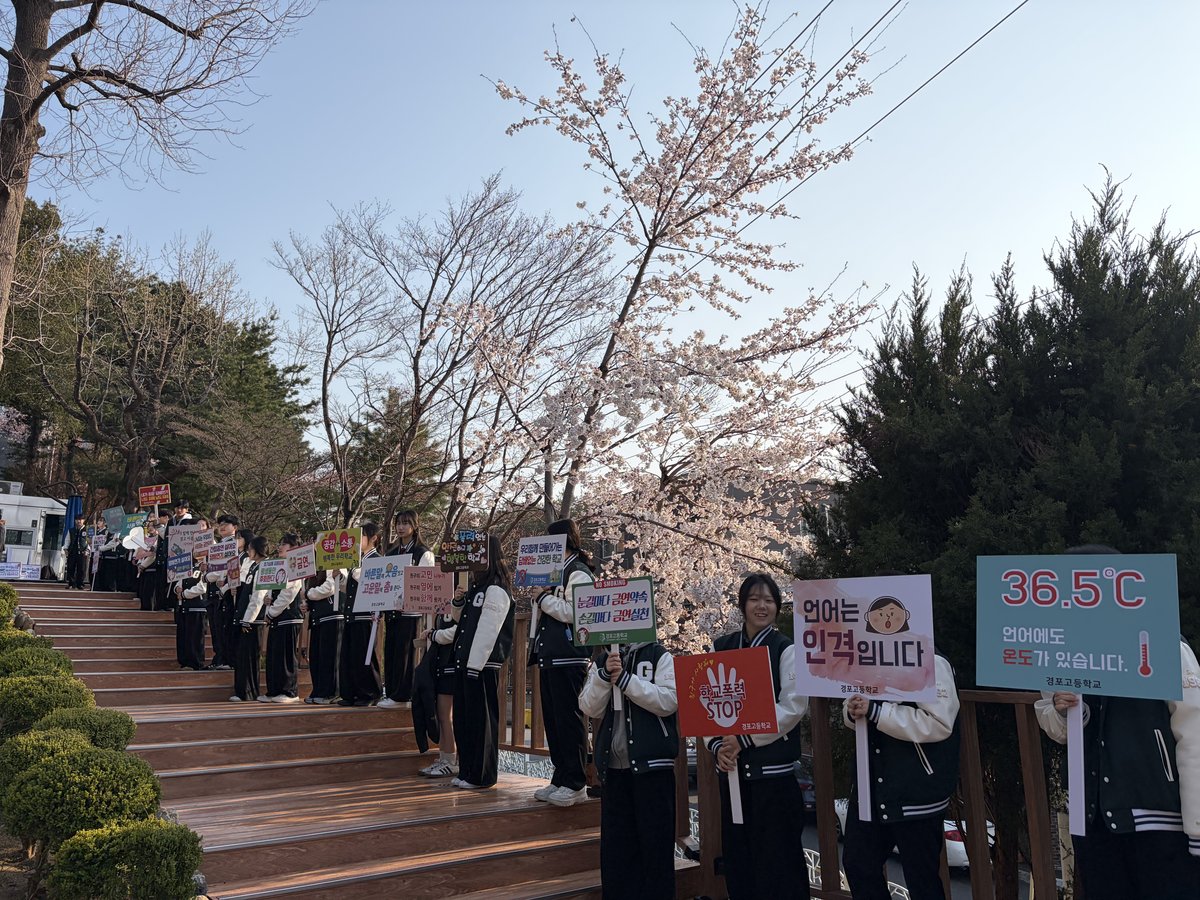 [충청뉴스큐] 경포고등학교는 4월 2일 학생자치회와 학생부 교사가 함께하는 '교문 캠페인'을 실시했다.