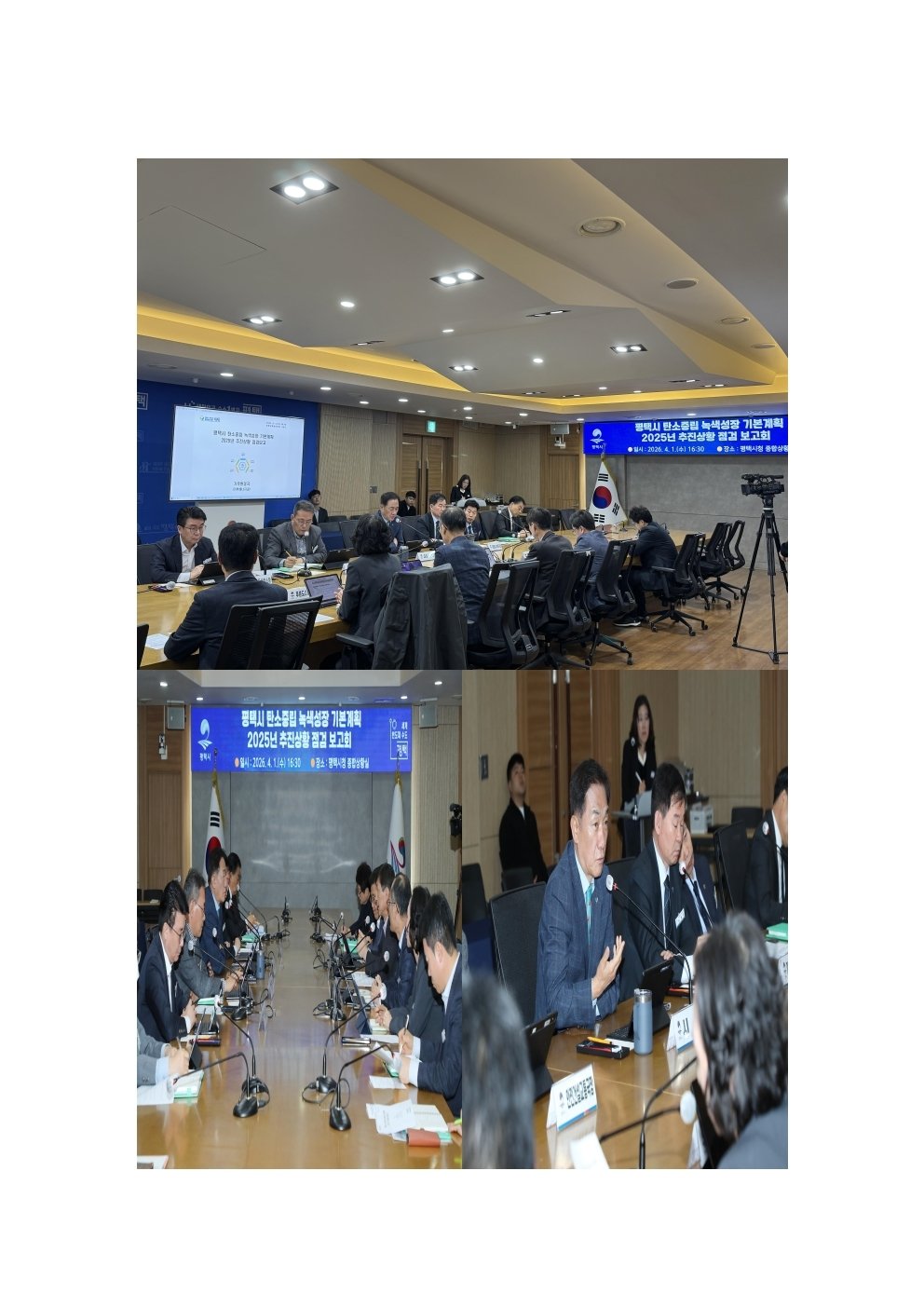 이번 보고회는 2025년 4월 수립된 제1차 평택시 탄소중립 녹색성장 기본계획 의 추진상황을 점검하기 위해 마련됐으며 관련 국 소장과 부서장 등이 참석했다.