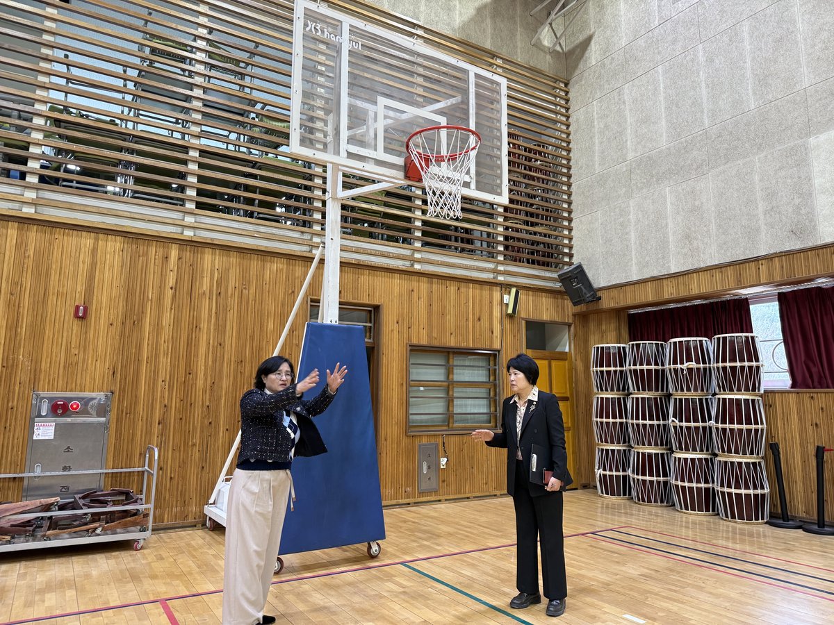 협소한 실내 체육공간에 노후한 이동식 농구대가 설치돼 있어 공간 활용에 제약이 있는 데다, 체육관 내 빔프로젝터와 옥외 운동장 트랙 역시 개선이 필요한 것으로 확인됐다.