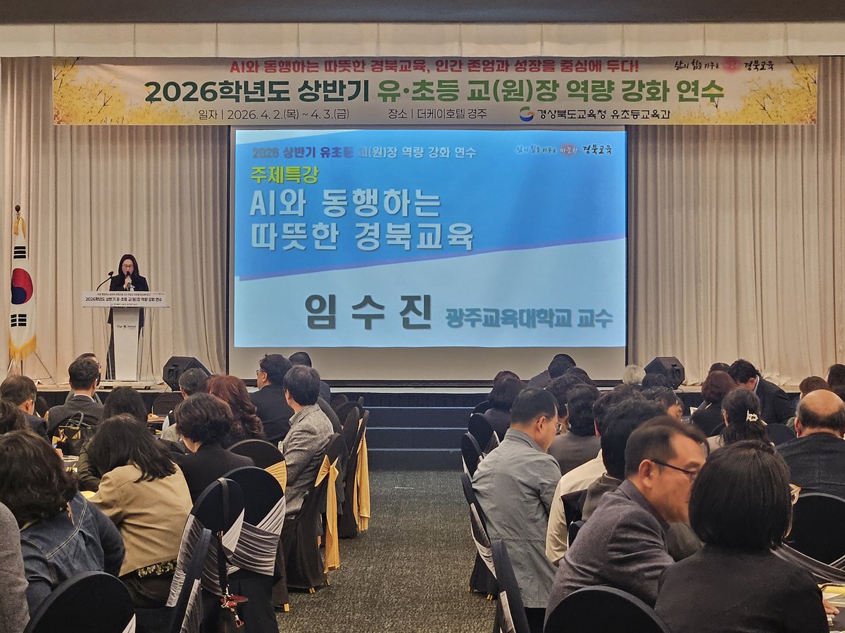 연수 첫날에는 광주교육대학교 임수진 교수가 ‘AI와 동행하는 따뜻한 경북교육’을 주제로 특강을 진행했다.