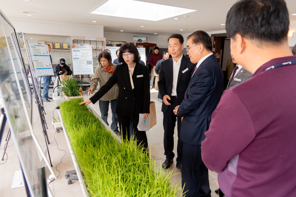 볍씨 소독 방법에 따른 발아율과 육묘상 성묘율 비교 시험 결과를 전시해 농업인들이 소독 효과를 직접 확인할 수 있도록 했으며 드론 무논 건답 직파 등 재배 유형별 관리기술과 관 배수 요령도 함께 소개했다.