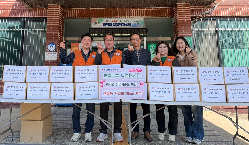[충청뉴스큐] 천안시 광덕면은 지난 2일 한줄두줄봉사단이 ‘사랑의 생필품 세트’를 기탁했다고 밝혔다.