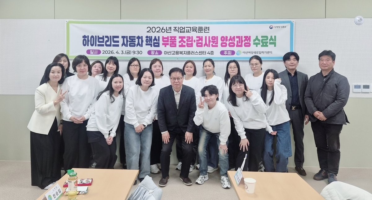 [충청뉴스큐] 아산시와 아산여성새로일하기센터는 지난 3일 지역 특화 전략 산업 맞춤형 교육인 ‘하이브리드 자동차 핵심 부품 조립 검사원 양성 과정’ 수료식을 개최했다.
