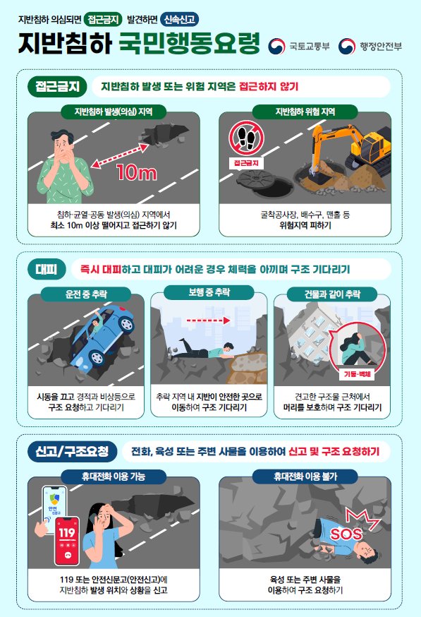“앞으로도 관계기관과의 협력을 바탕으로 지반침하 재난에 대한 대응체계를 차질 없이 운영해 나가겠다”고 밝혔다.
