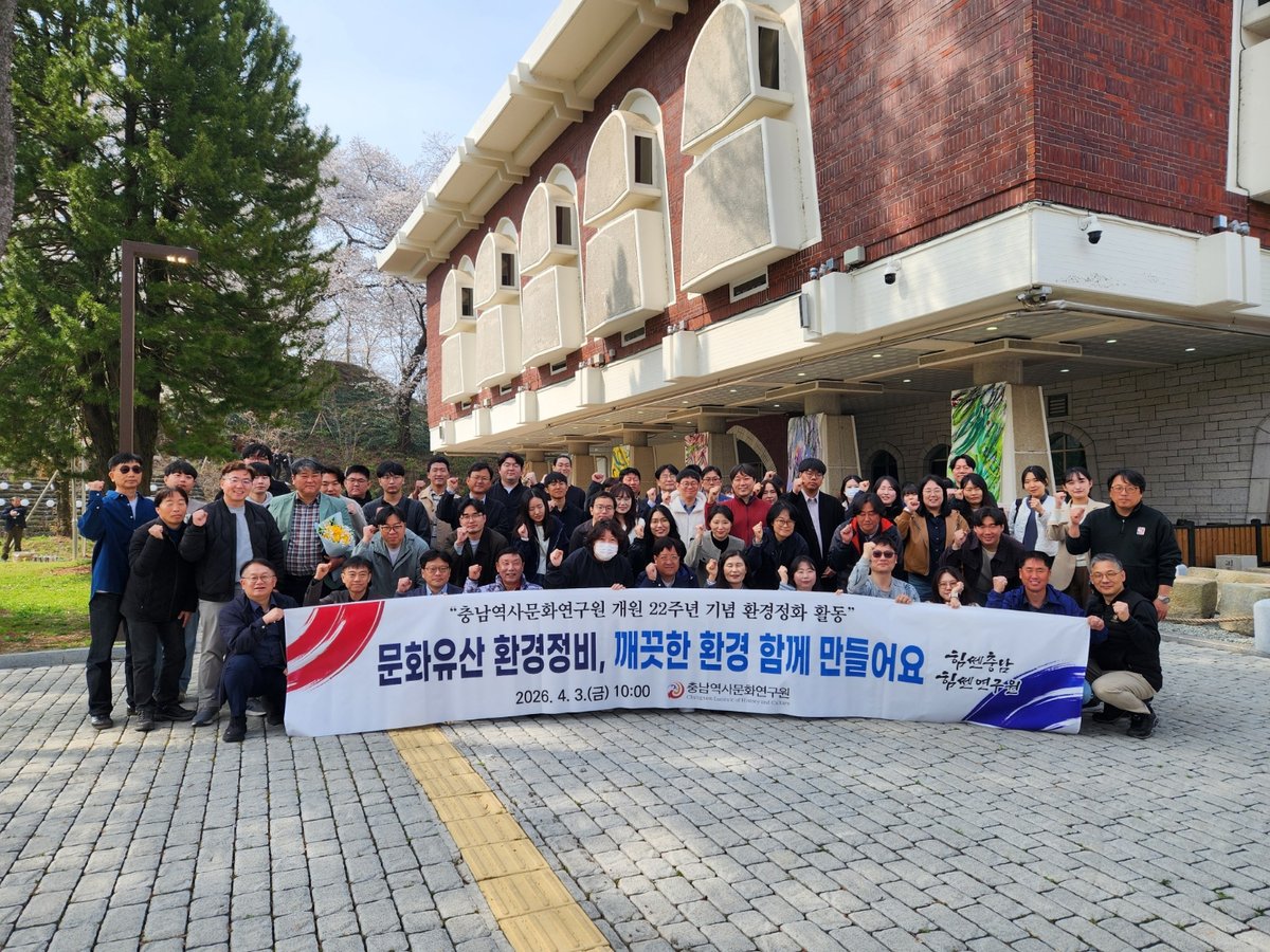 [충청뉴스큐] 충남역사문화연구원은 개원 22주년을 맞아 4월 3일 공주 충남역사박물관 및 제민천 일원에서 전 직원이 참여한 가운데 문화유산 환경정화 및 식목행사를 개최했다고 밝혔다.