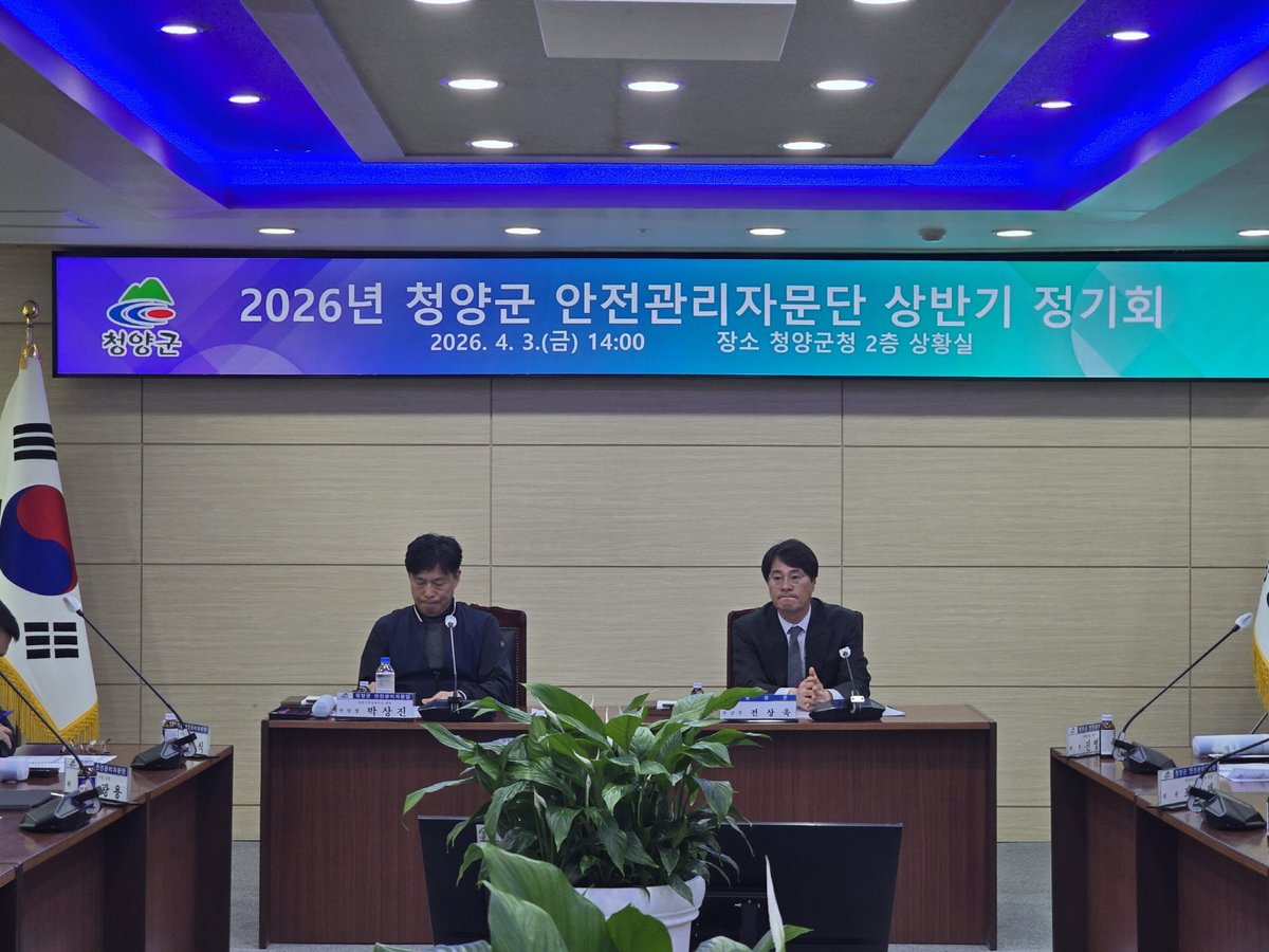 군은 지난 3일 군청 상황실에서 전상욱 부군수와 안전관리자문단 위원 등 16명이 참석한 가운데 ‘2026년 청양군 안전관리자문단 상반기 정기회’를 개최했다고 밝혔다.