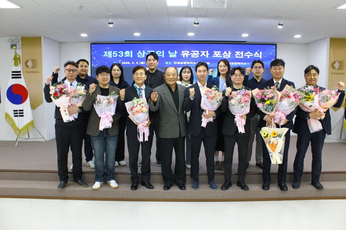 [충청뉴스큐] 안성상공회의소는 4월 3일 11:30 안성상공회의소 대회의실에서 제53회 상공의 날을 기념해 지역 상공업 발전과 경제 성장에 기여한 유공자에 대한 훈장 및 표창을 전수했다.