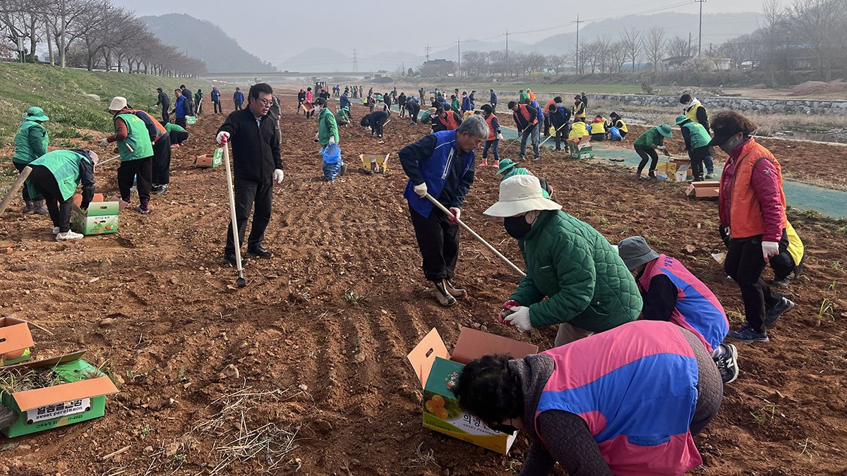 [충청뉴스큐] 충남 서산시 운산면은 4월 3일 운산면 관내 16개 기관 단체 회원 200여명이 참여한 가운데 용장천변 일대에 억새를 식재했다고 밝혔다.