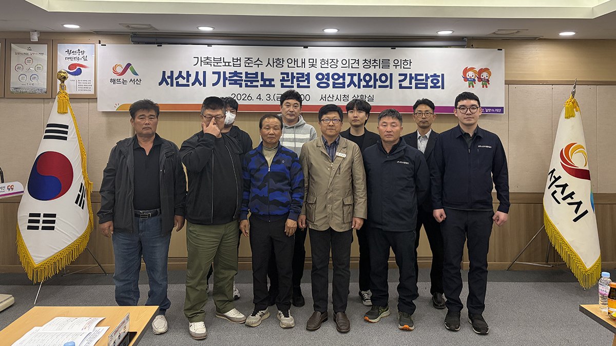 [충청뉴스큐] 충남 서산시는 3일 가축분뇨의 적정 처리와 자원화 활성화를 위해 관내 가축분뇨 관련 영업자를 대상으로 간담회를 개최 소통의 시간을 가졌다.