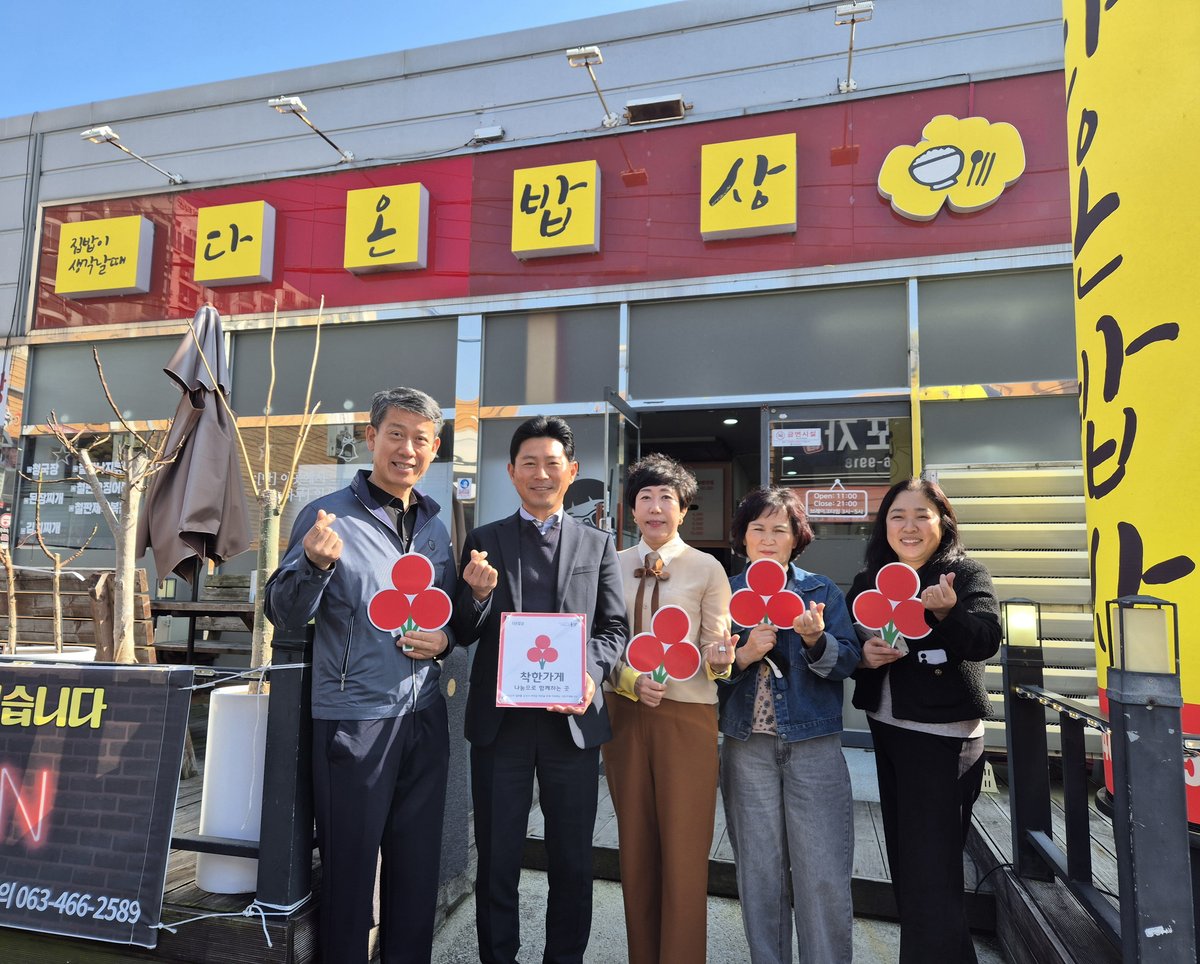 군산시 구암동, 착한가게 45~47호점 현판 전달 ‘수산물센타’, ‘장국명가’, ‘다온밥상’착한가게 참여 군산시 구암동 지역사회보장협의체는 지난 6일 나눔에 동참한 신규 ‘착한가게’ 3곳을 대상으로 현판 전달식을 진행하고 지역복지 증진에 기여한 데 대한 감사의 뜻을 전했다.