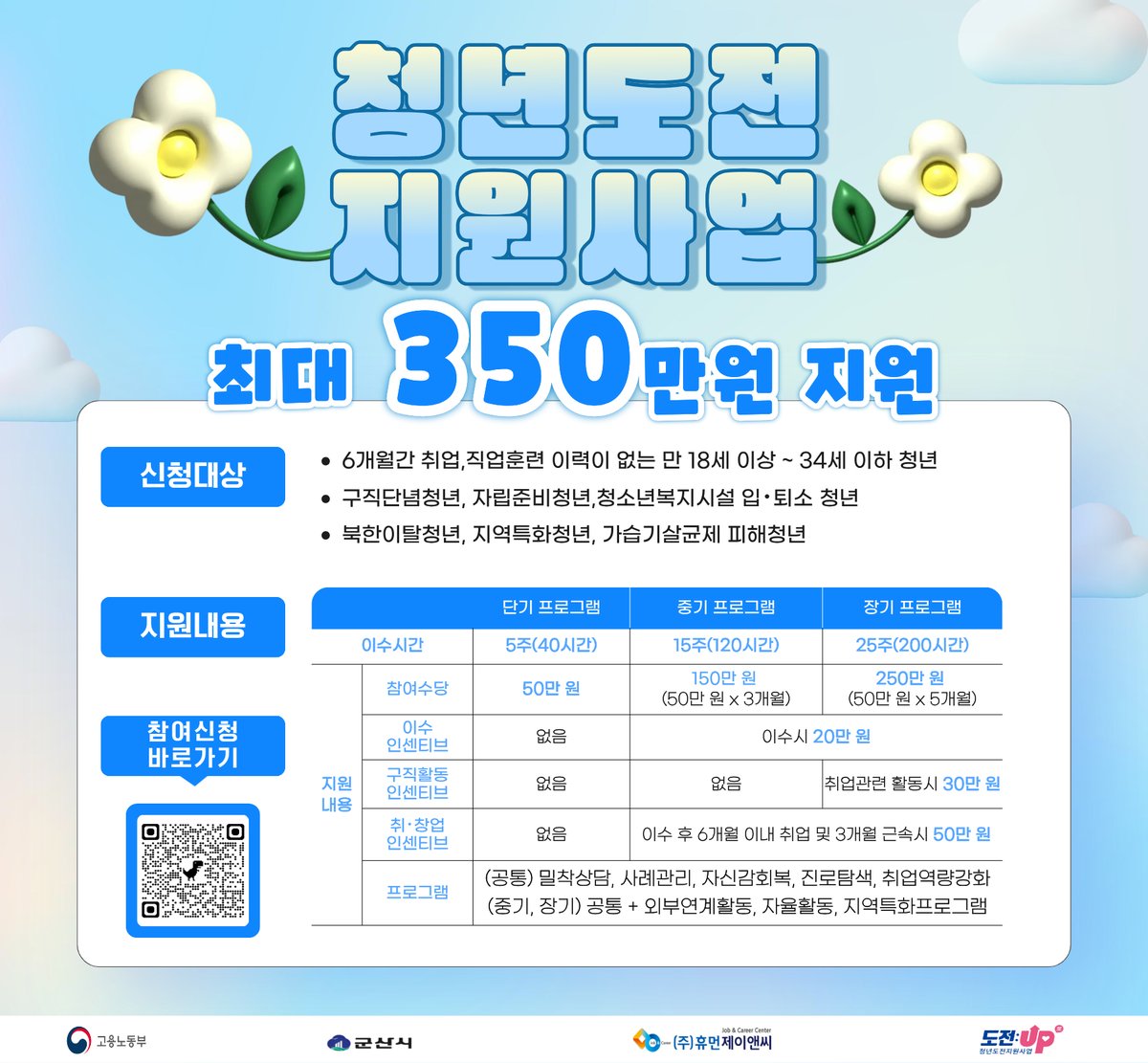 [충청뉴스큐] 군산시가 고용노동부가 주관하는 ‘청년도전지원사업’ 공모에 최종 선정되어 구직활동에 어려움을 겪고 있는 청년들을 지원하기 위해 참여자를 모집한다.