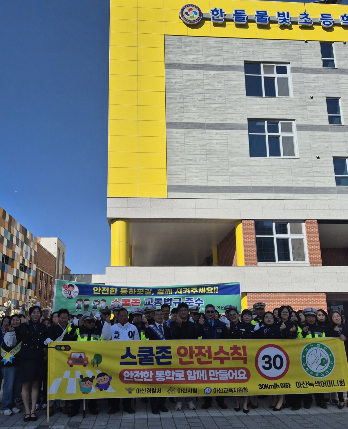 [충청뉴스큐] 한들물빛초등학교는 87학급, 2100여명이 재학하는 대규모 학교로 이날 캠페인에서는 학생들의 안전한 등굣길을 위해 교통안전 홍보와 홍보물품 배부가 진행됐다.