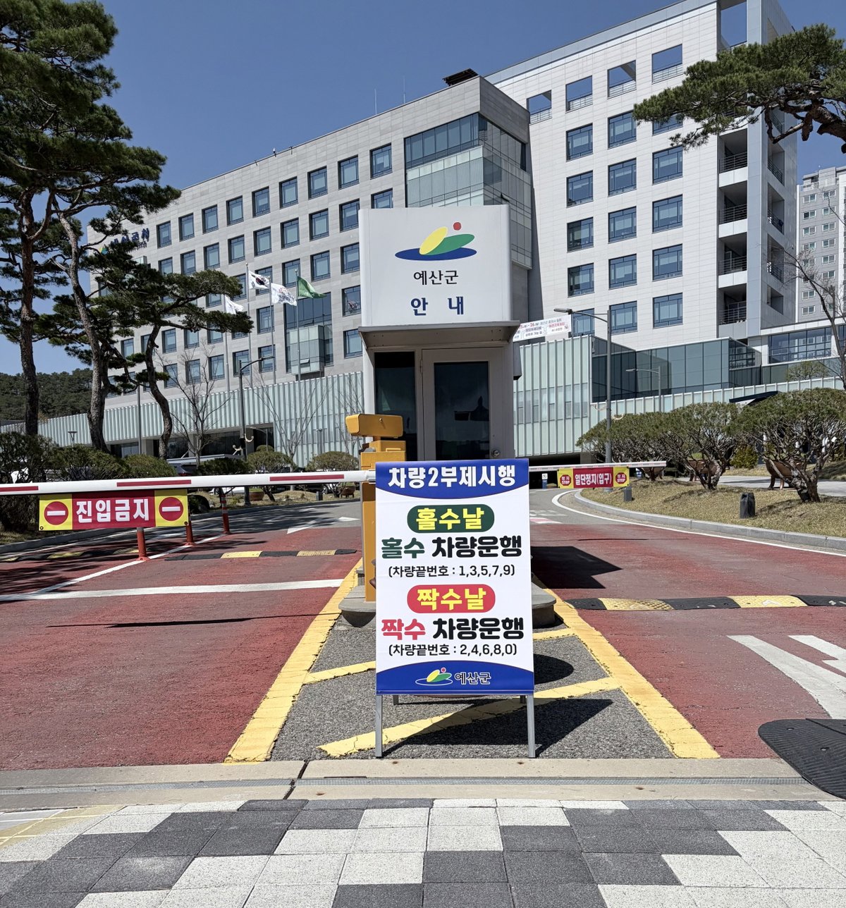 [충청뉴스큐] 예산군은 중동 사태 장기화에 따른 원유 수급 불안에 대응하고 에너지 절약을 통한 자원안보 위기 극복을 위해 공공기관 ‘승용차 2부제’를 시행한다고 밝혔다.