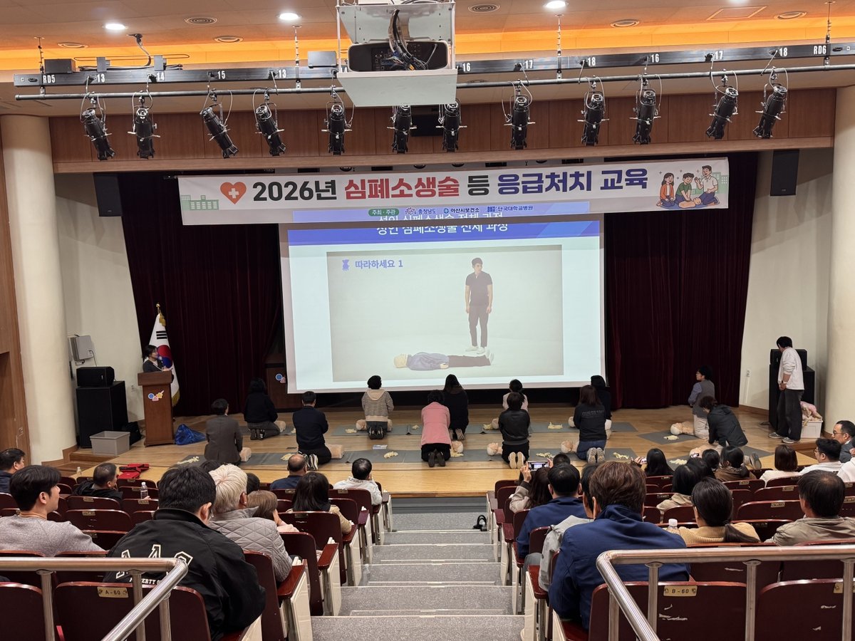 [충청뉴스큐] 아산시는 지난 7일과 8일 양일간 아산시 청소년교육문화센터에서 시민들의 응급상황 대응능력 향상과 심정지 환자의 생존율을 높이기 위한 2026년 심폐소생술 등 응급처치 교육을 실시했다.