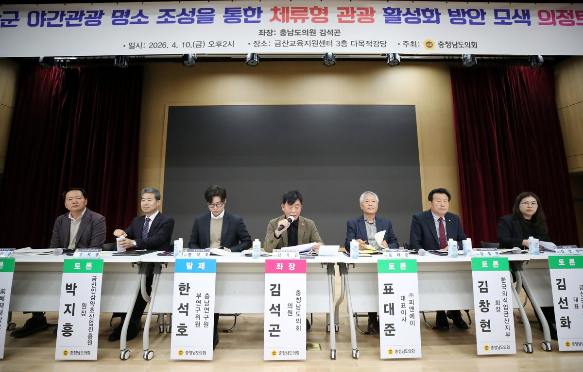 도의회는 10일 금산군교육지원센터 다목적 강당에서 ‘금산군 야간관광명소 조성을 통한 체류형 관광 활성화 방안 모색을 위한 의정토론회’를 개최했다. 이번 토론회는 단순 경유형 관광지에 머물고 있는 금산군의 관광 구조를 개선하고 지역 경제 활성화를 도모하기 위한 정책적 대안을 마련하고자 추진됐다.